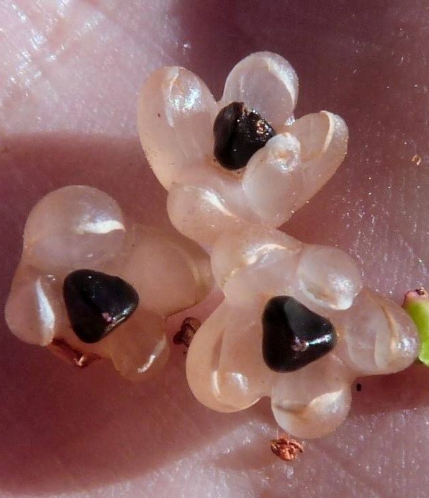 Früchte dreikantig, von wachsartigem Perigon umgeben Blüten getrenntgeschlechtlich, 5 Perigonblätter Blätter rundlich oder lanzettlich > Muehlenbeckia