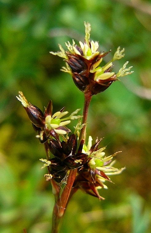 Blüten mit 6 braunen Perigonblättern Stängelblätter langhaarig > 5 |