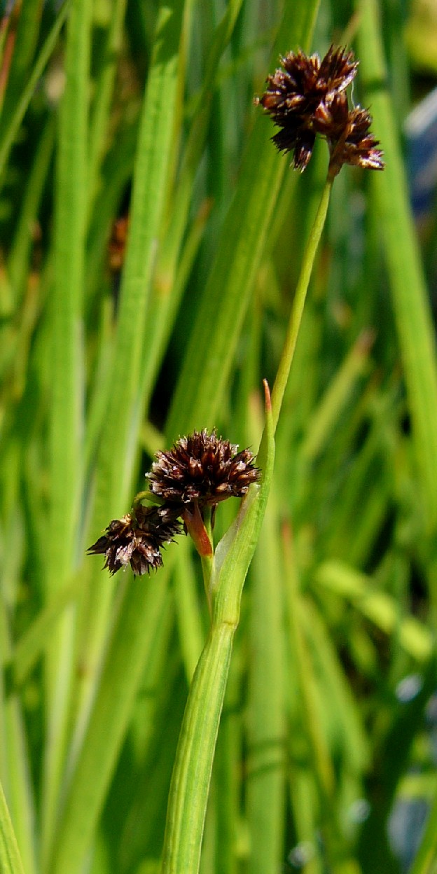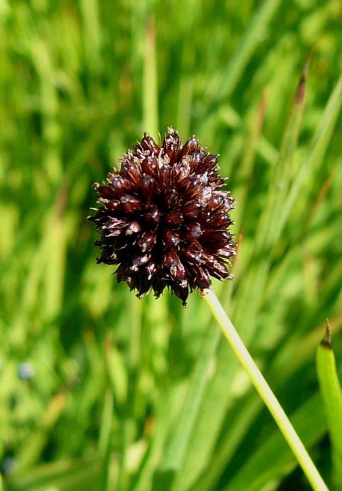 Pflanze 25 - 80 cm groß Spirre 1 - 6- köpfig Köpfe kugelig, dicht und reichblütig, Kapsel so lang wie die Perigonblätter, Blätter reitend, schwertförmig