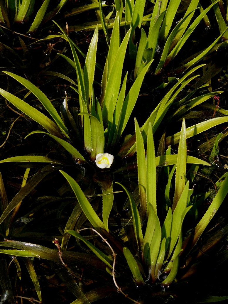 Grund mit Spatha Blätter schmal lanzettlich, am Rand gesägt > Krebsschere (Stratiotes) |