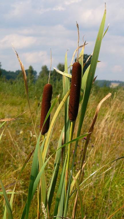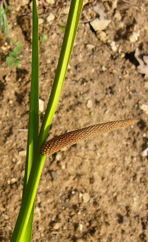 Wasserpflanzen, im oder am Wasser stehend, Blüten in Kolben, Blätter schwertförmig