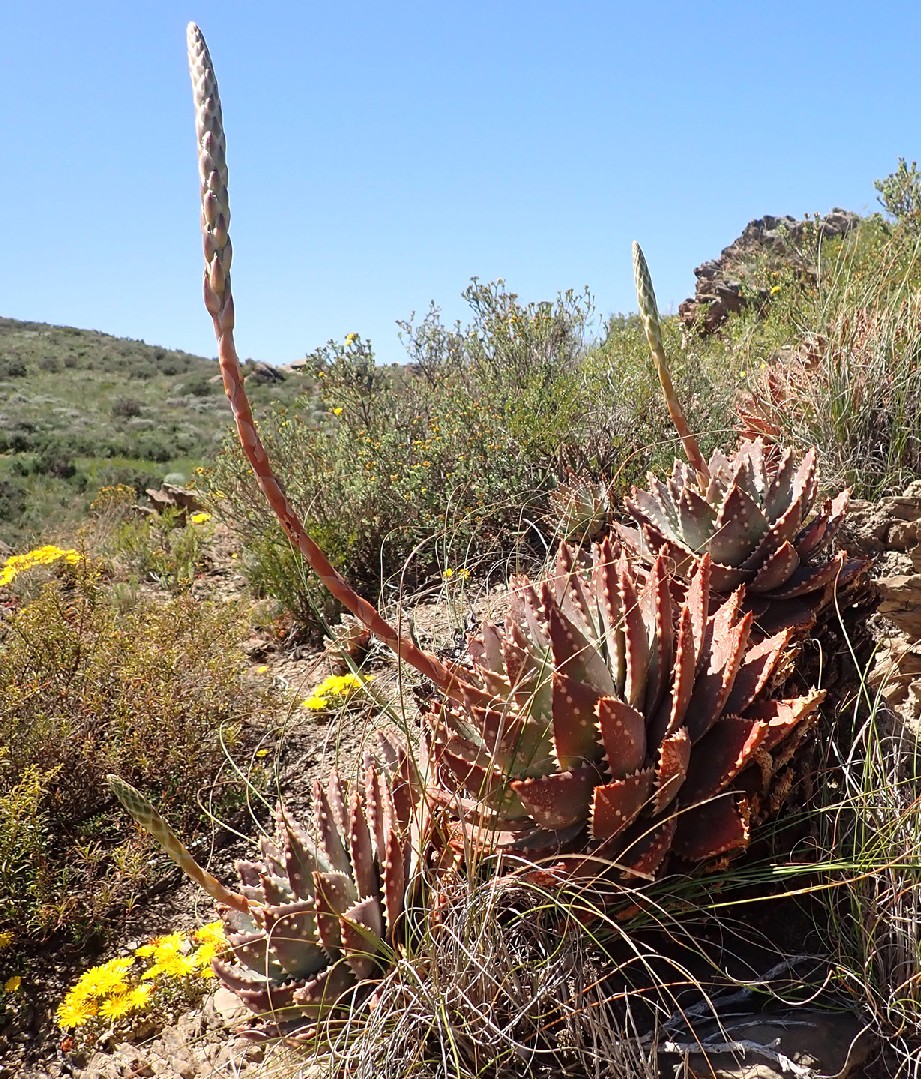 italiano: Weltweite Verbreitung: Eingebürgert in: 2n = 14 Etymologie: Aloe maculata bildet mit vielen anderen Aloe-Arten Hybride, die ebenfalls im Handel sind, so dass eine Bestimmung oft unsicher ist.