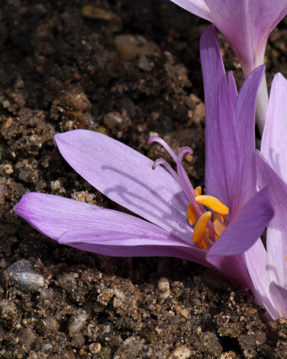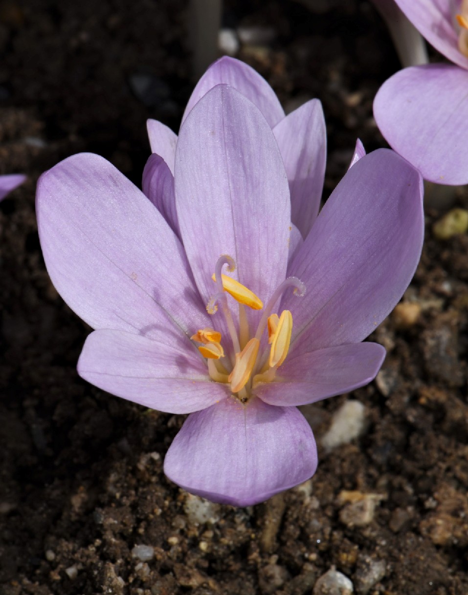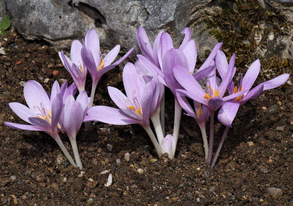 Blüten zu 1 - 7, hellviolett oder blauviolett, glockig oder trichterförmig, mit 6 Perigonblättern, die im unteren Teil zu einer langen, weißlich oder rosafarbenen Perigonröhre verwachsen sind