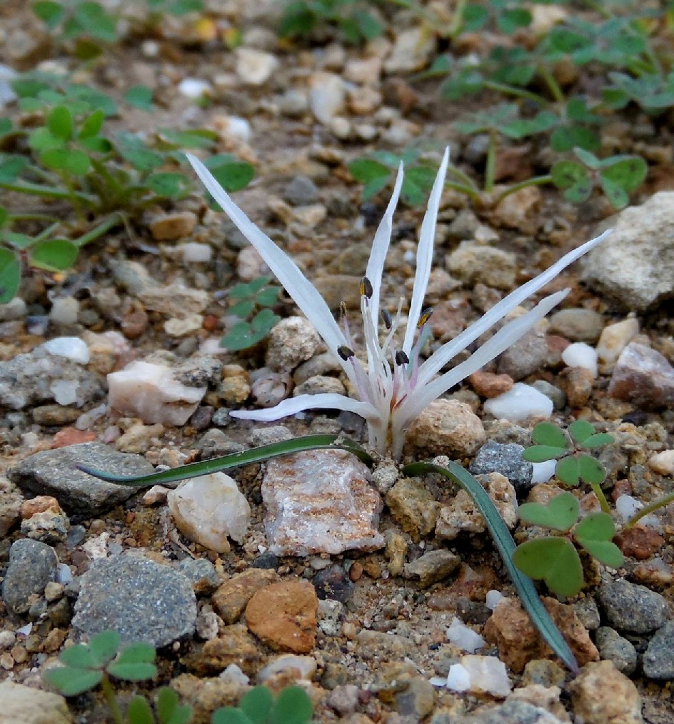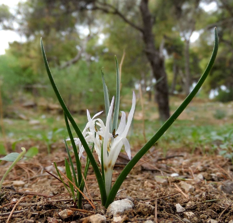 Zwiebel eikugelig, 15 - 20 mm im Durchmesser, mit ledrigen Hüllen