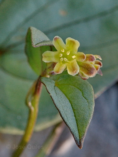 Männliche Blüten mit 6 Perigonblätter und 6 Staubblätter, Filamente 1,5 mm lang, Antheren kürzer als die Filamente, gelb