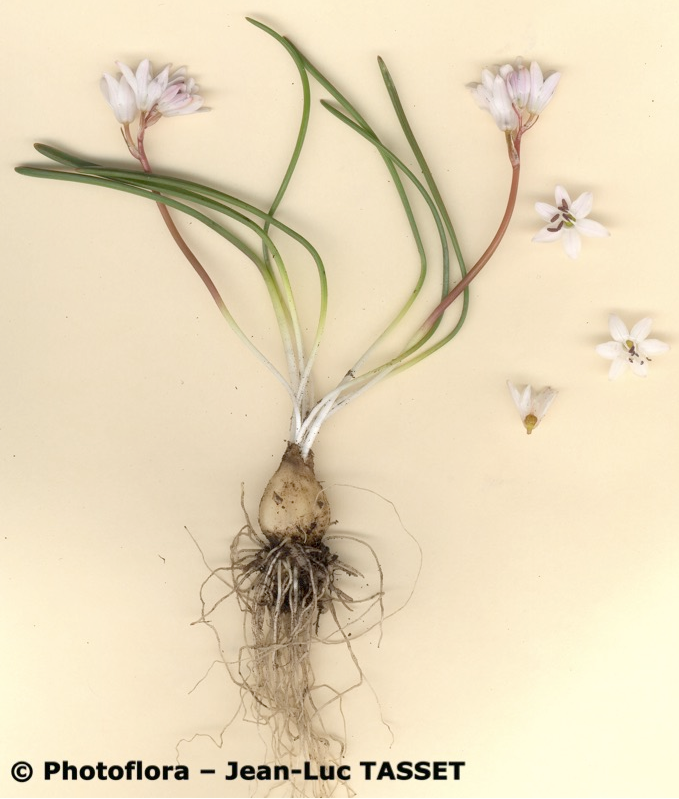 Zwiebel eiförmig, 10 - 35 mm lang, mit grauen Zwiebelhüllen