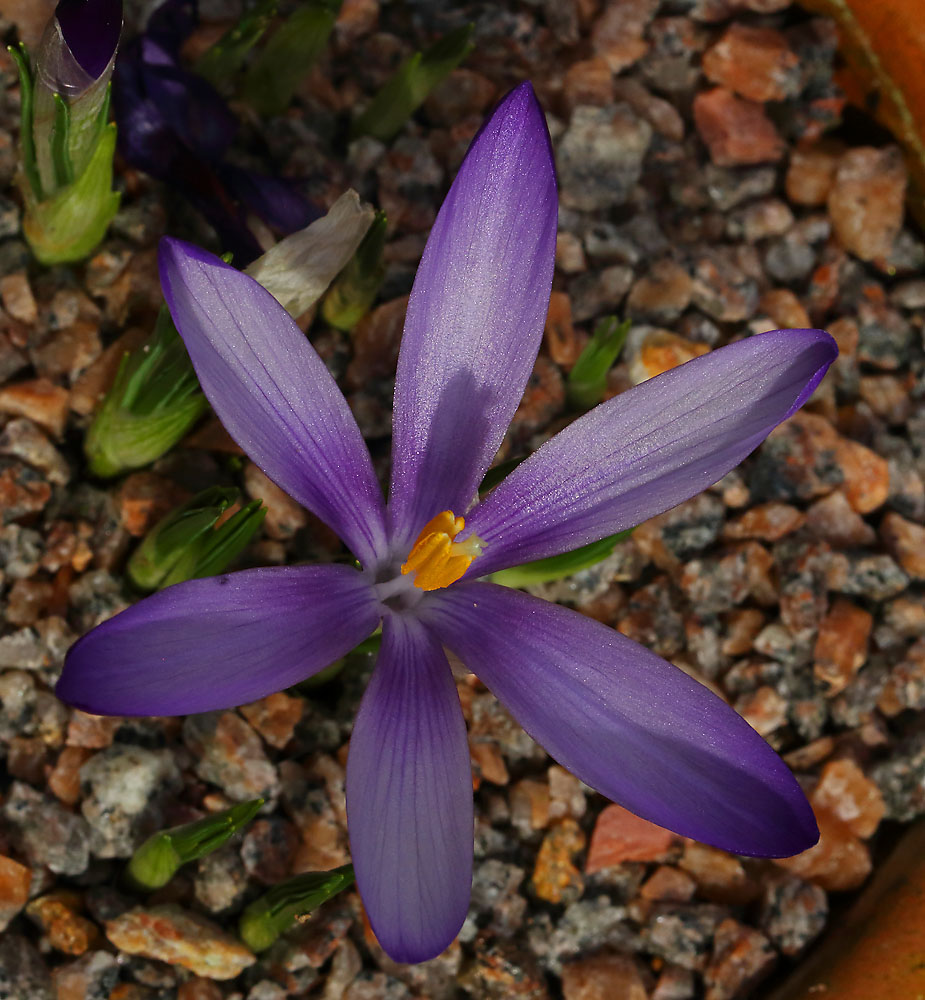 Perigonröhre violett, mit 2 +/- gleichen Hüllblättern, 2 - 4 weiße Cataphylls, die oft die Basis der Perigonzipfel erreichen, Prophyll vorhanden