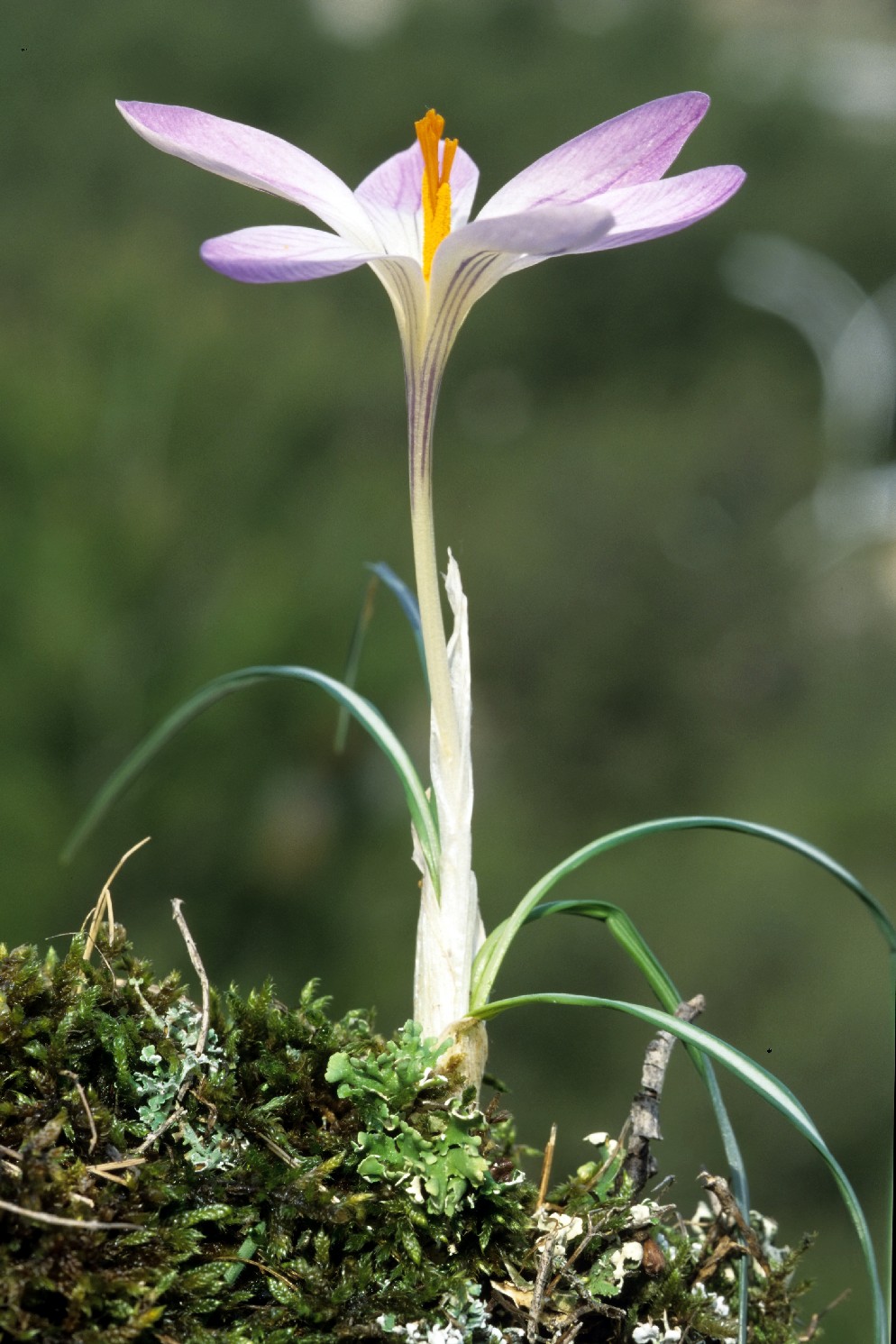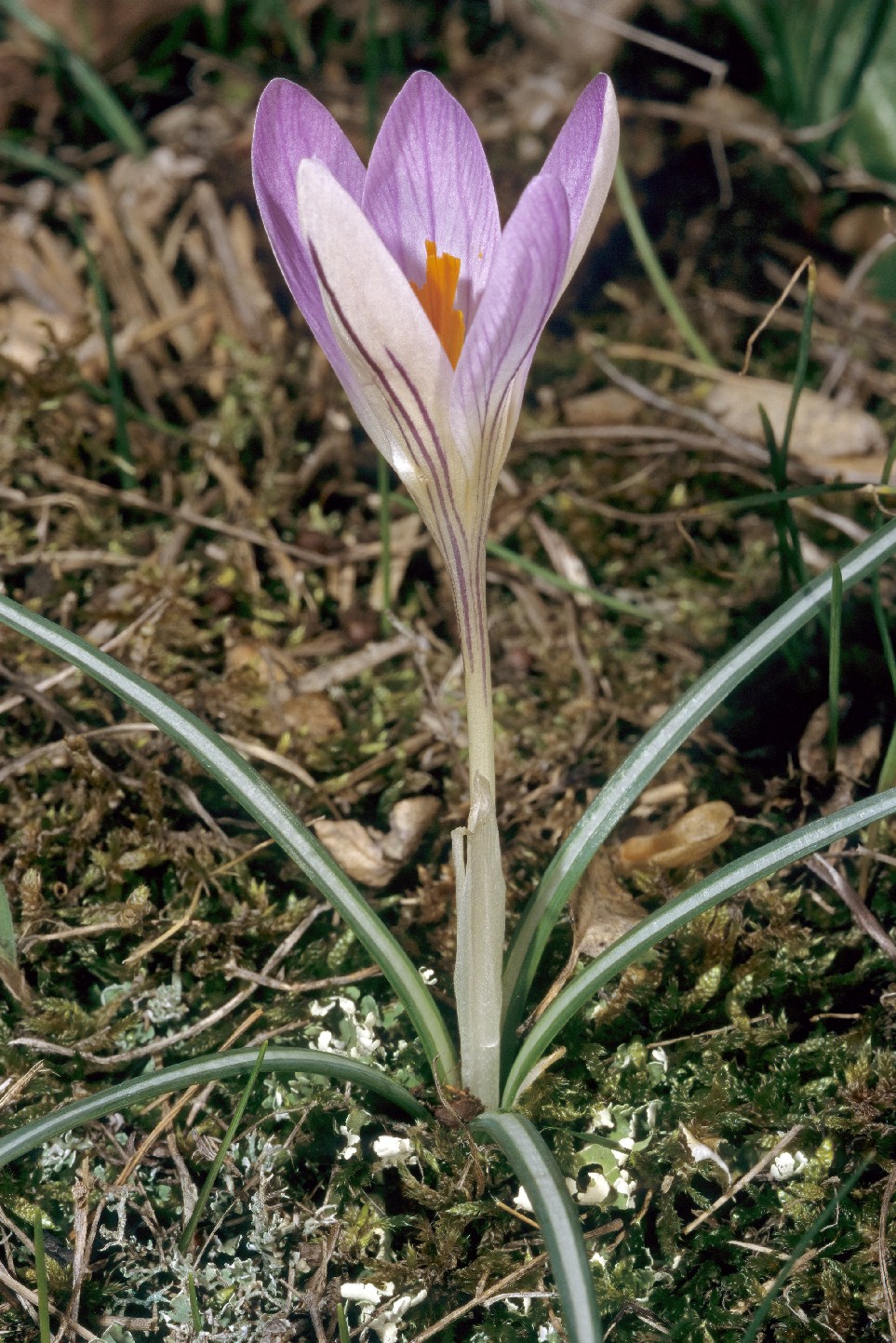 Perigonröhre oben meist violett und gestreift, unten weißlich, von 1 - 2 Hochblättern (Braktee und Brakteole) eingehüllt, Brakteole schmaler oder fehlend, mit 3 - 4 weißlichen, membranösen Cataphylls, Prophyll vorhanden