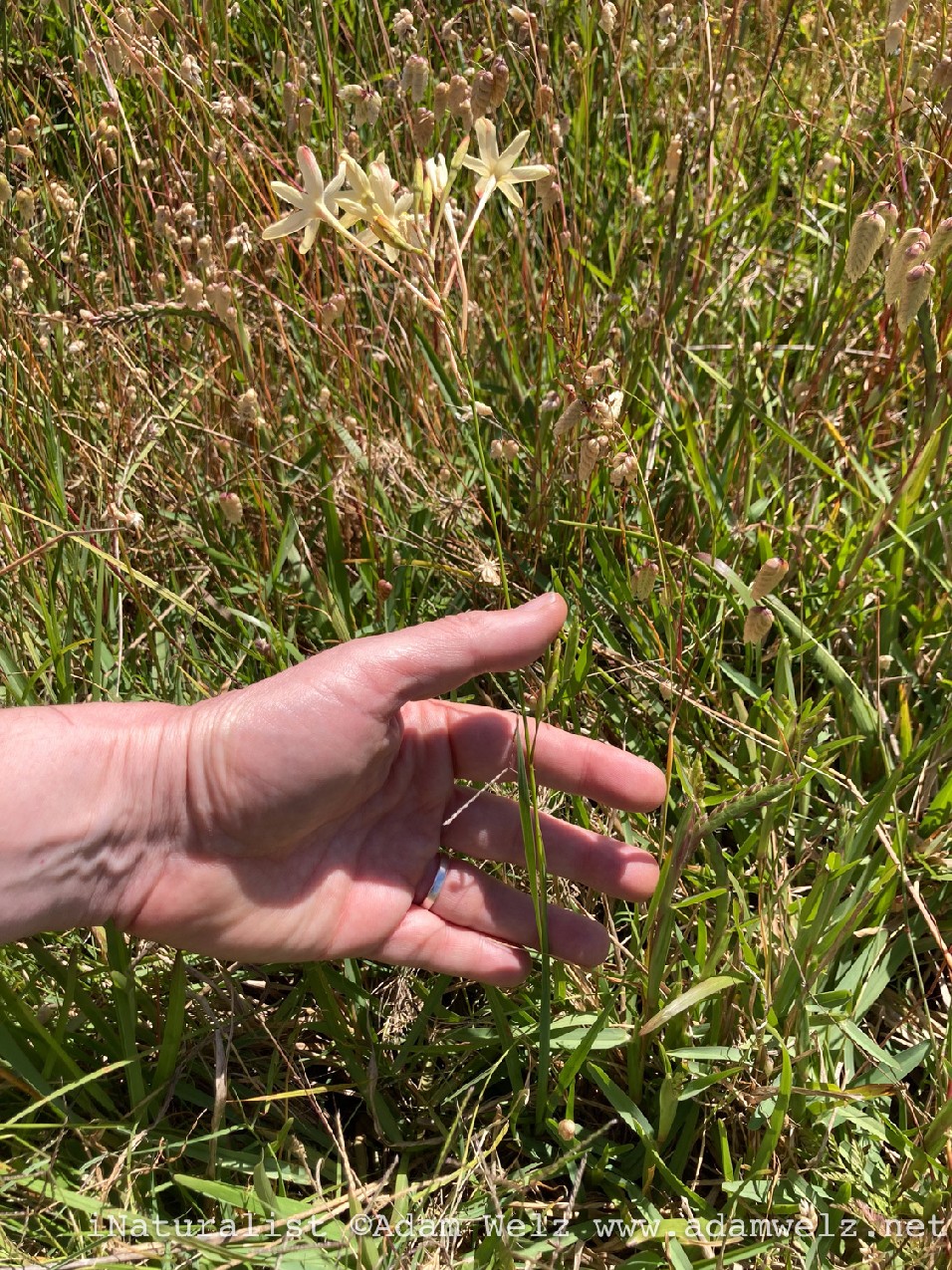 Blütenstände rispig, mit 3 - 15 sitzenden Blüten, äußere Perigonzipfel außen rot überlaufen, Hüllblätter dachziegelig überlappend, klein, membranös, den Fruchtknoten und den unteren Teil des Hypanthium umhüllend, Hypanthium gerade, schlank