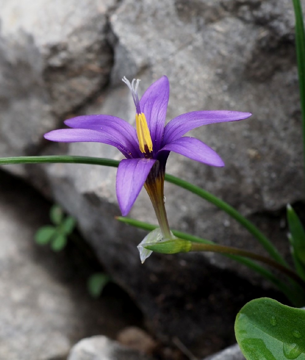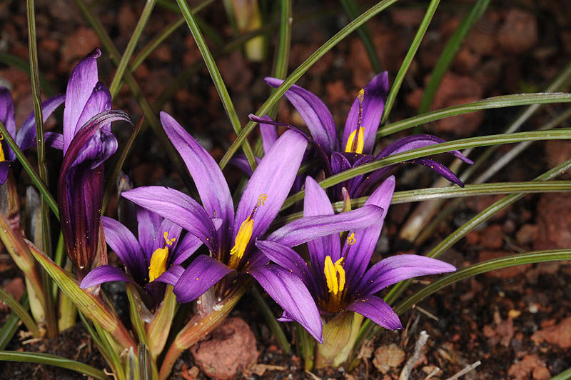 Romulea- Blüten dunkelviolett, Schlund nur im unteren Teil gelb, Perigonröhre eng, 8 - 17 mm lang