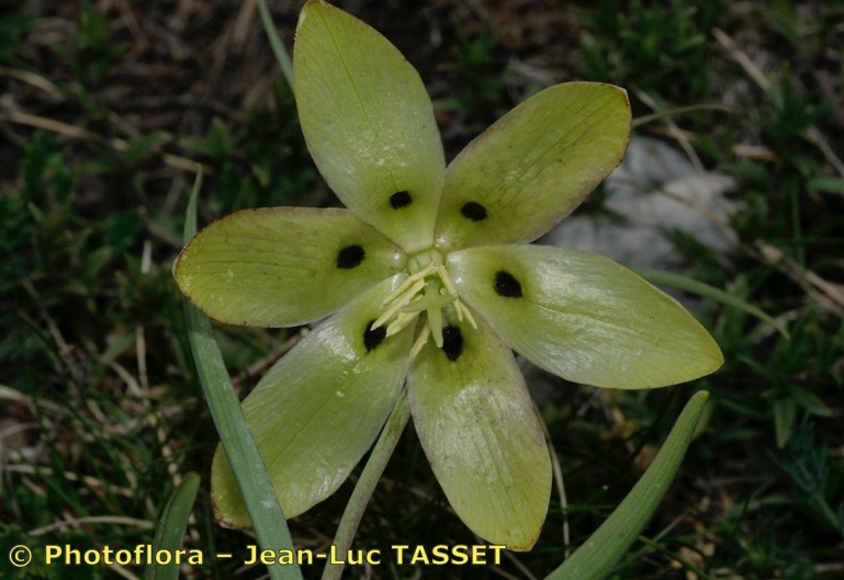 Blüten innen grün, Nektardrüsen rundlich, 4 mm im Durchmesser, 5 - 6 mm vom Grund der Perigonblätter entfernt