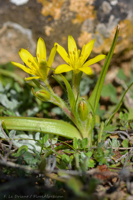 Gagea - Blüten gelb, Hüllblätter des Blütenstandes unterirdisch am Stängel ansetzend