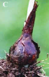 Zwiebel eiförmig, 30 - 40 mm lang, 15 - 20 mm breit, ohne
