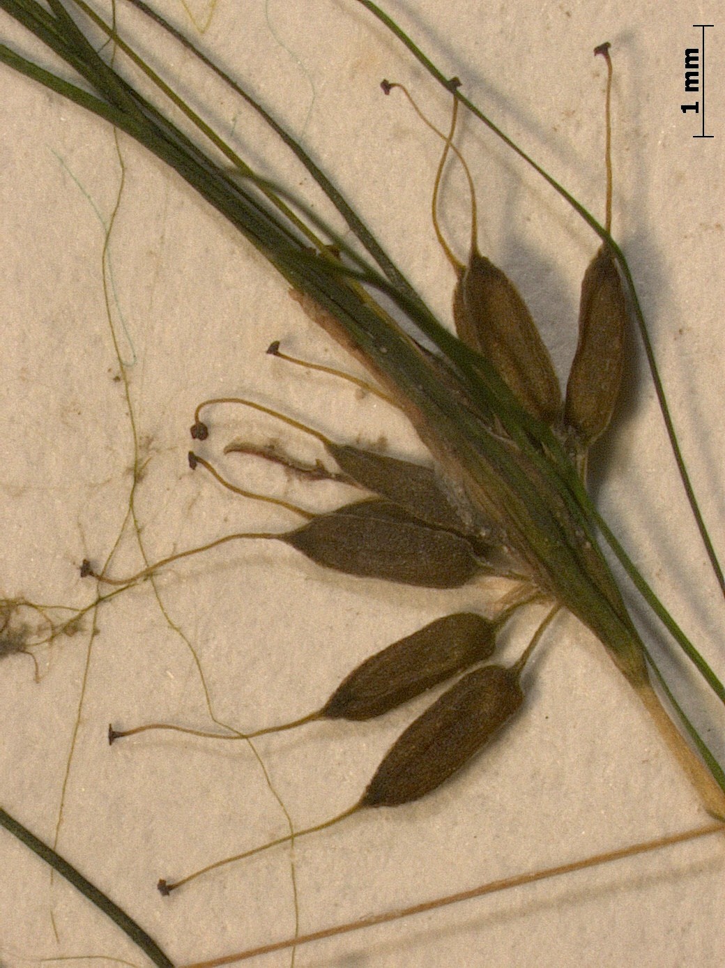 Früchte elliptisch, ca. 2 mm lang, gestielt, lang geschnäbelt