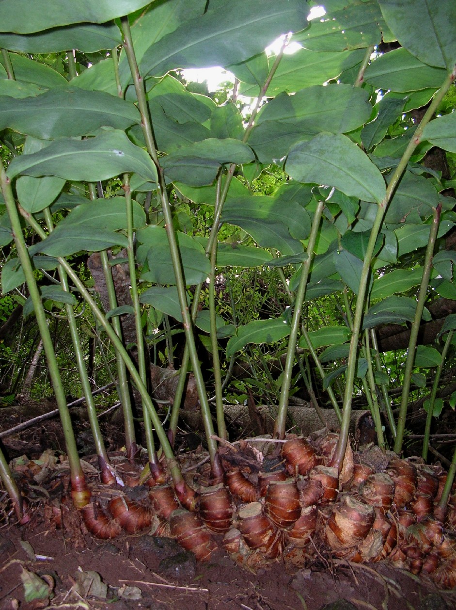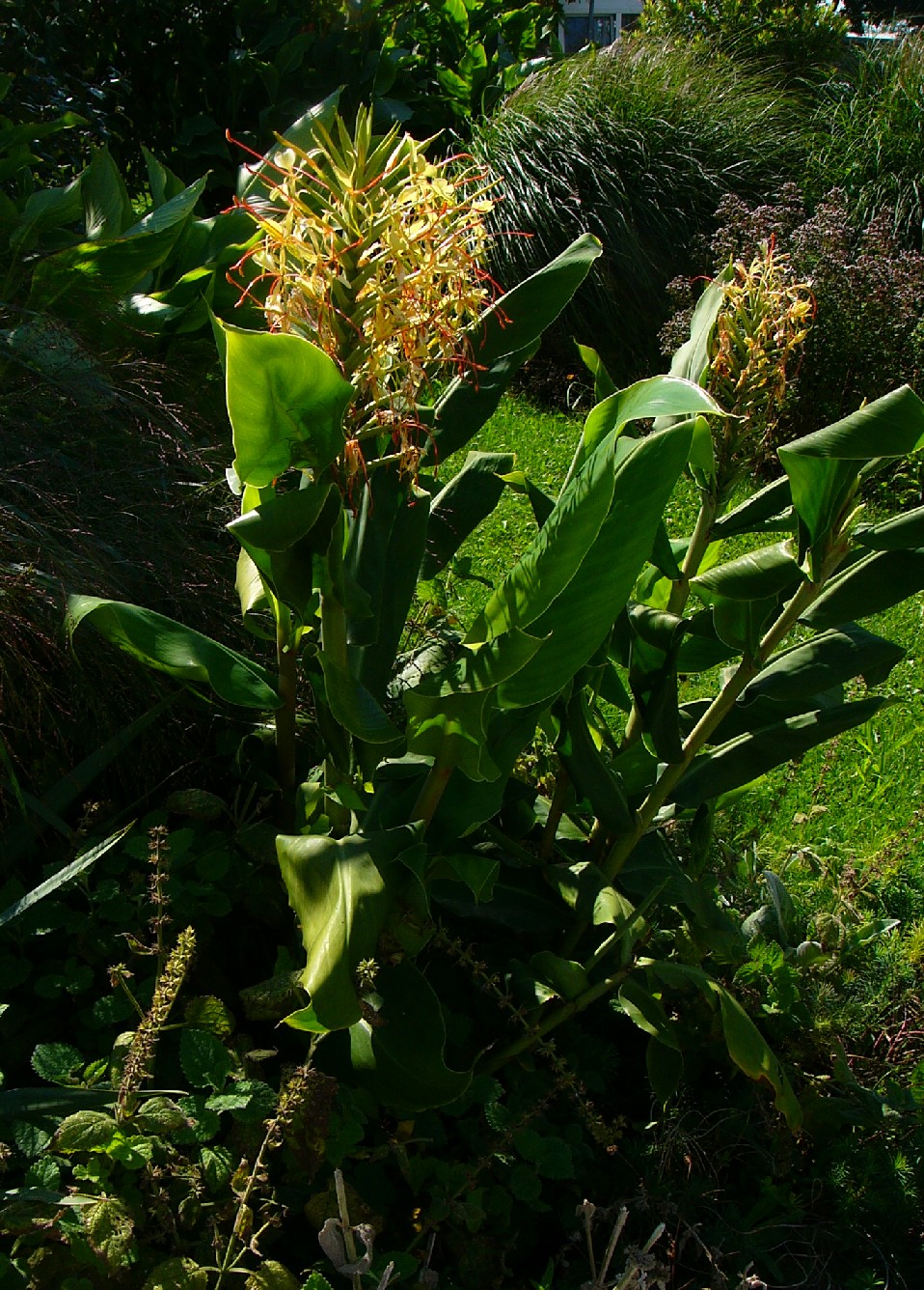 in: Etymologie: Im natürlichen Lebensraum kommt Hedychium gardnerianum an Bachläufen oder Mischwaldrändern in Höhen von 1900 bis 2000 m vor.