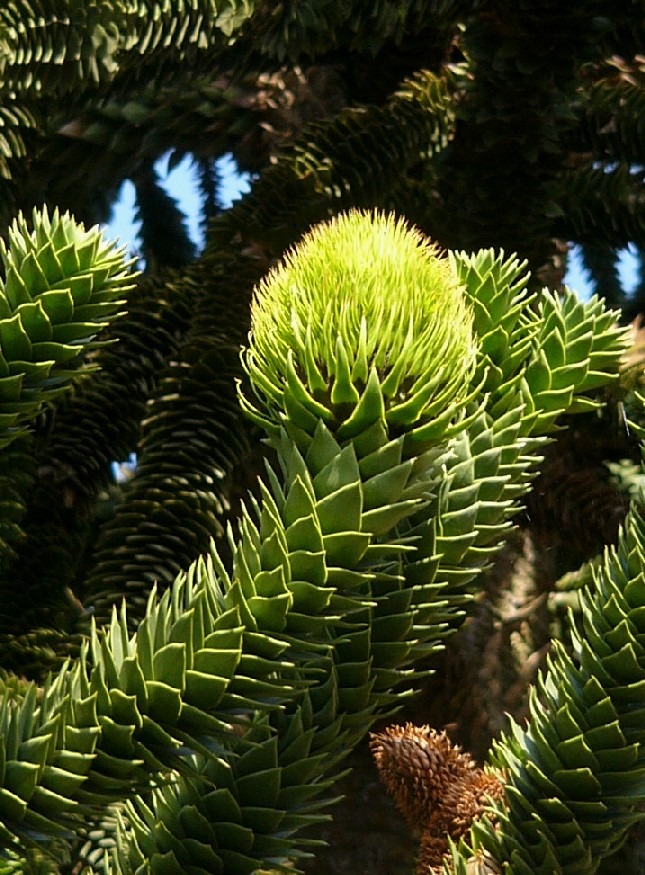 Weibliche Zapfen: endständig, in kugelig Reife Zapfen 12 - 15 cm groß Junge Blätter dreieckig, weich, ca. 1 - 1,5 cm lang