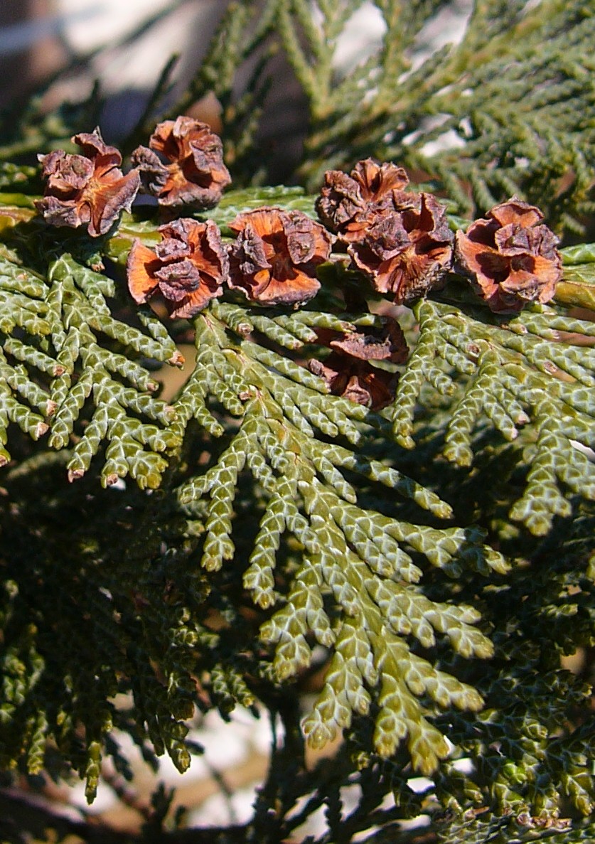 Cupressaceae - Blätter schuppenförmig, Zapfen kugelig, aus 6 - 16 Schuppen, verholzend