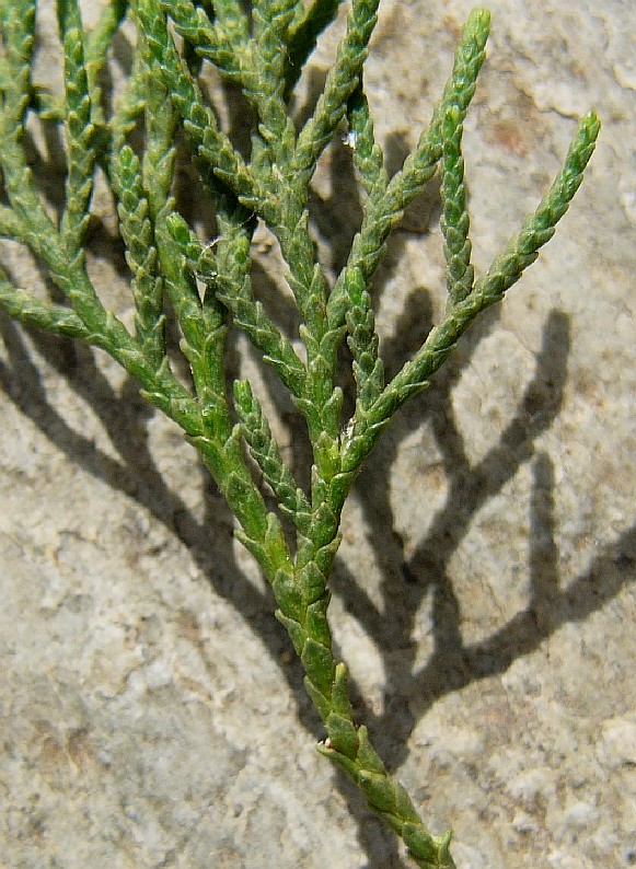beim Reifen braun werdend, mit 6 - 12 glatten oder mit einem kleinen Dorn versehenen Schuppen Junge Triebe im Querschnitt rund oder quadratisch