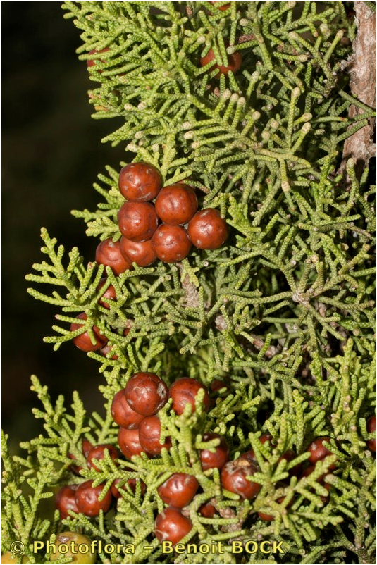 Juniperus - Blätter alle oder teilweise schuppenförmig, Schuppenblätter mit Hautrand, Zapfen braunrot