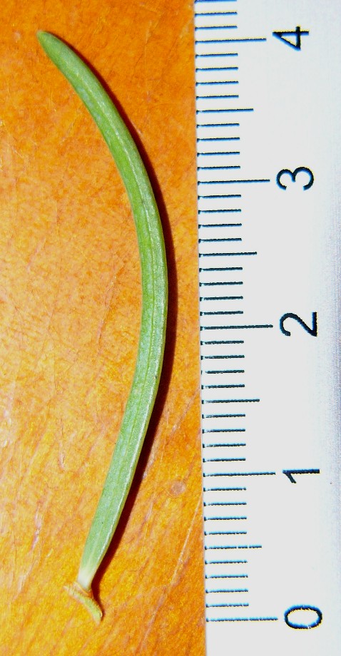 Nadeln , sichelförmig aufwärts gebogen, schwach zugespitzt oder gerundet, 4 - 8 cm lang