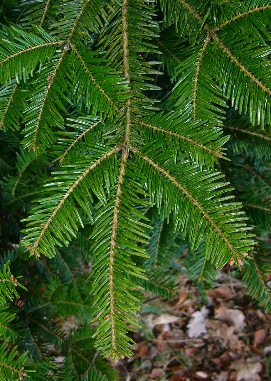 Abies - Nadeln oberseits grün, Zweige streng gescheitelt