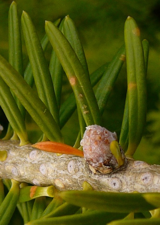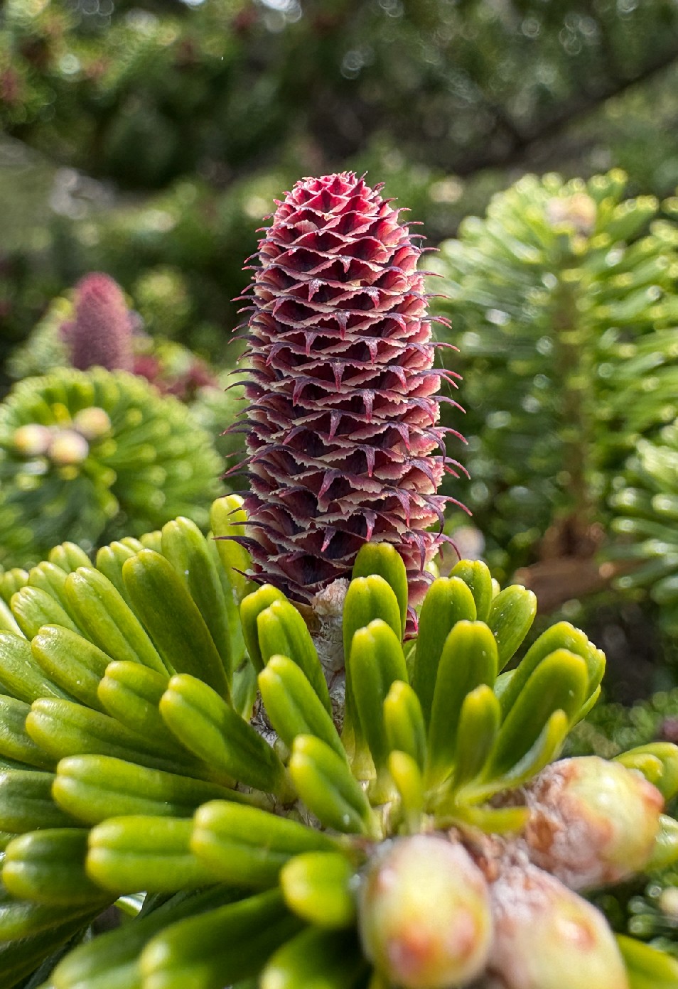 Junge weibliche Zapfen meist violett oder rosa, mit weit herausragenden Deckschuppen