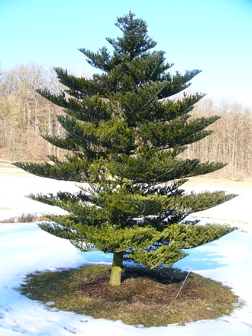 Nadeln fast rings um den Trieb gestellt, kurz ( 1,5 - 2 cm), oberseits grün