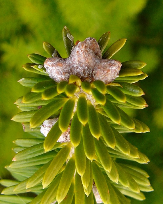 Abies - Nadeln 1 - 2 cm lang, oberseits grün, Zweige nicht streng gescheitelt