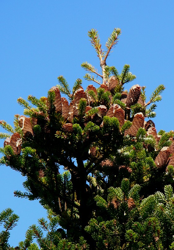 Ältere weibliche Zapfen 5 - 7 cm lang, fassförmig, Deckschuppen versteckt