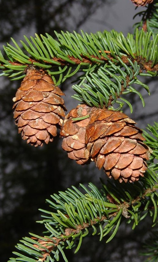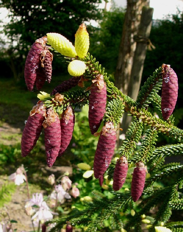 Zapfen 5 - 9 cm lang, hängend, stark harzig, länglich,