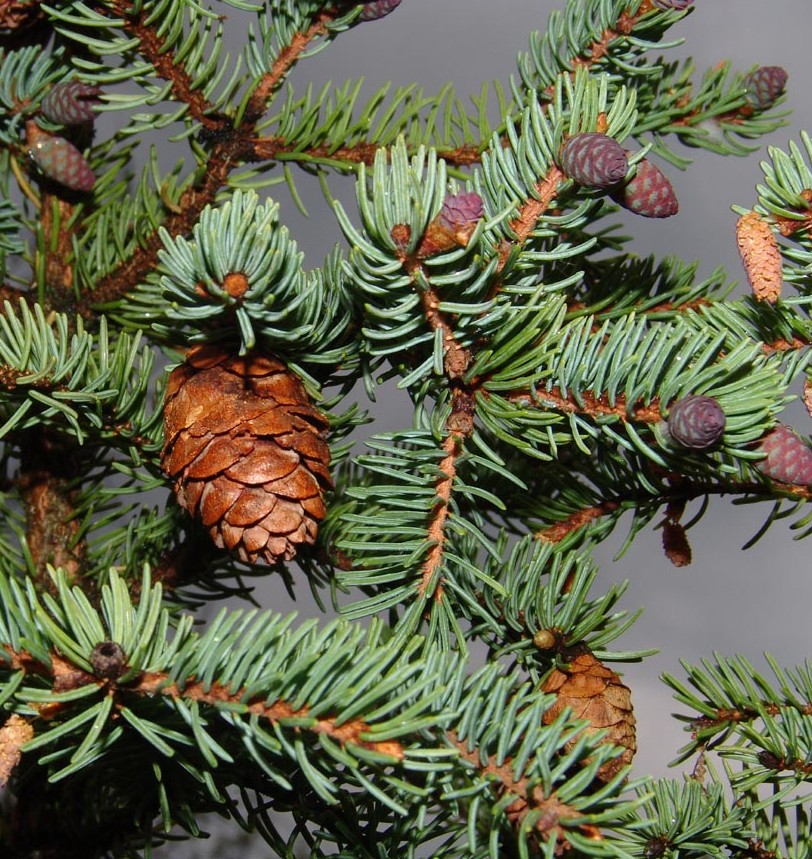 Picea - Nadeln vierkantig, mit Spaltöffnungsreihen +/- auf allen 4 Seiten, junge Zweige behaart
