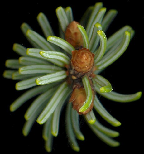 Nadeln stumpf, glänzend grün, nur 5 - 8 mm lang