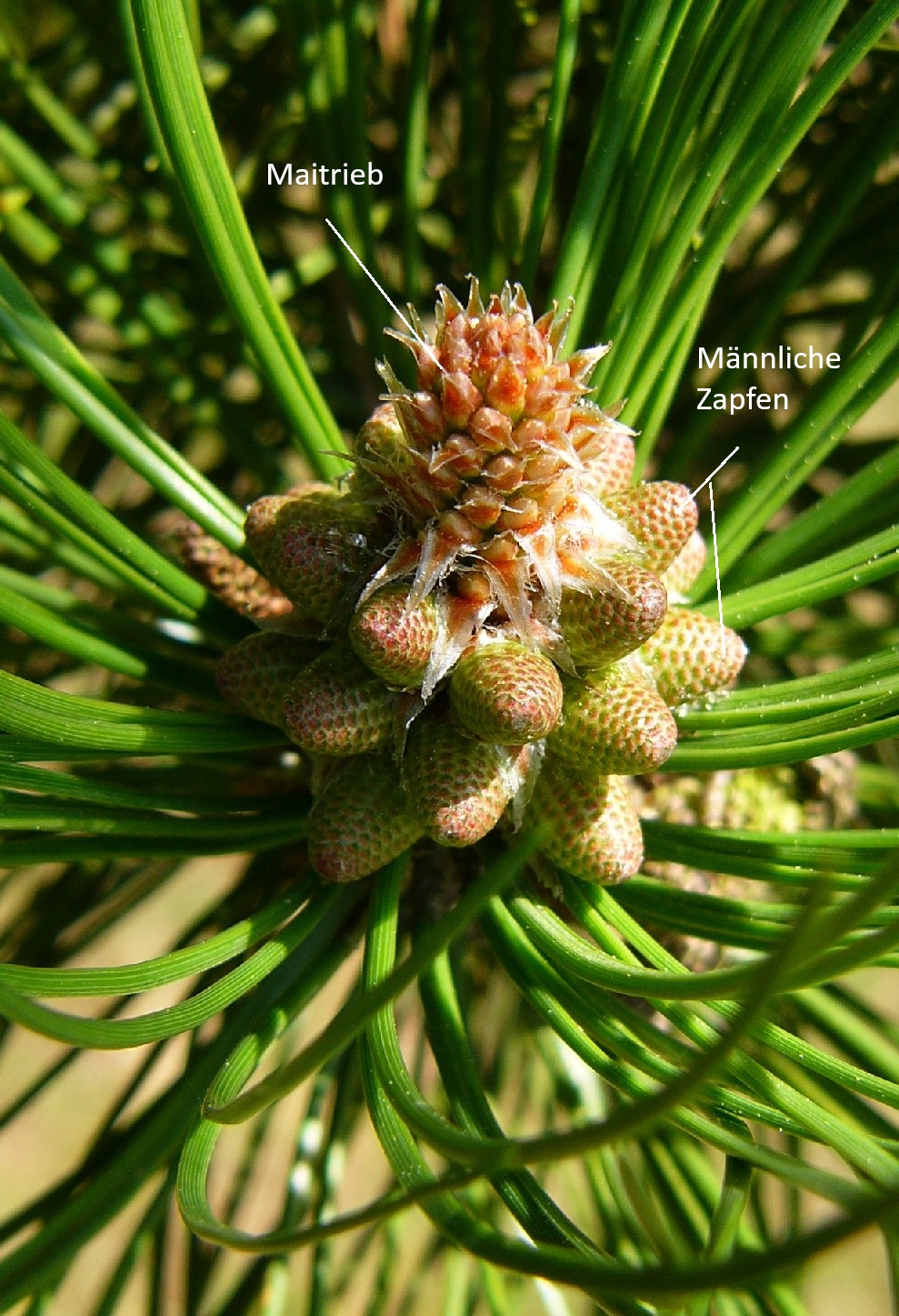 Nadeln 8 - 15 cm lang, Knospen harzig Junge Zapfen grünlich > 2