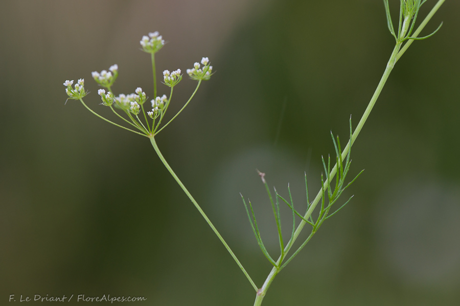 Döldchen mit 5 ungleichen Hüllchenblättern: 3 fädliche und 2 spatelförmige