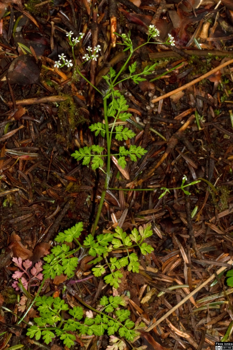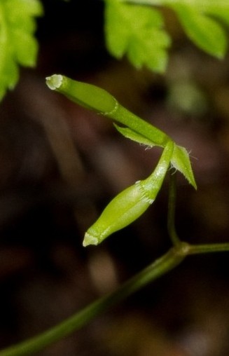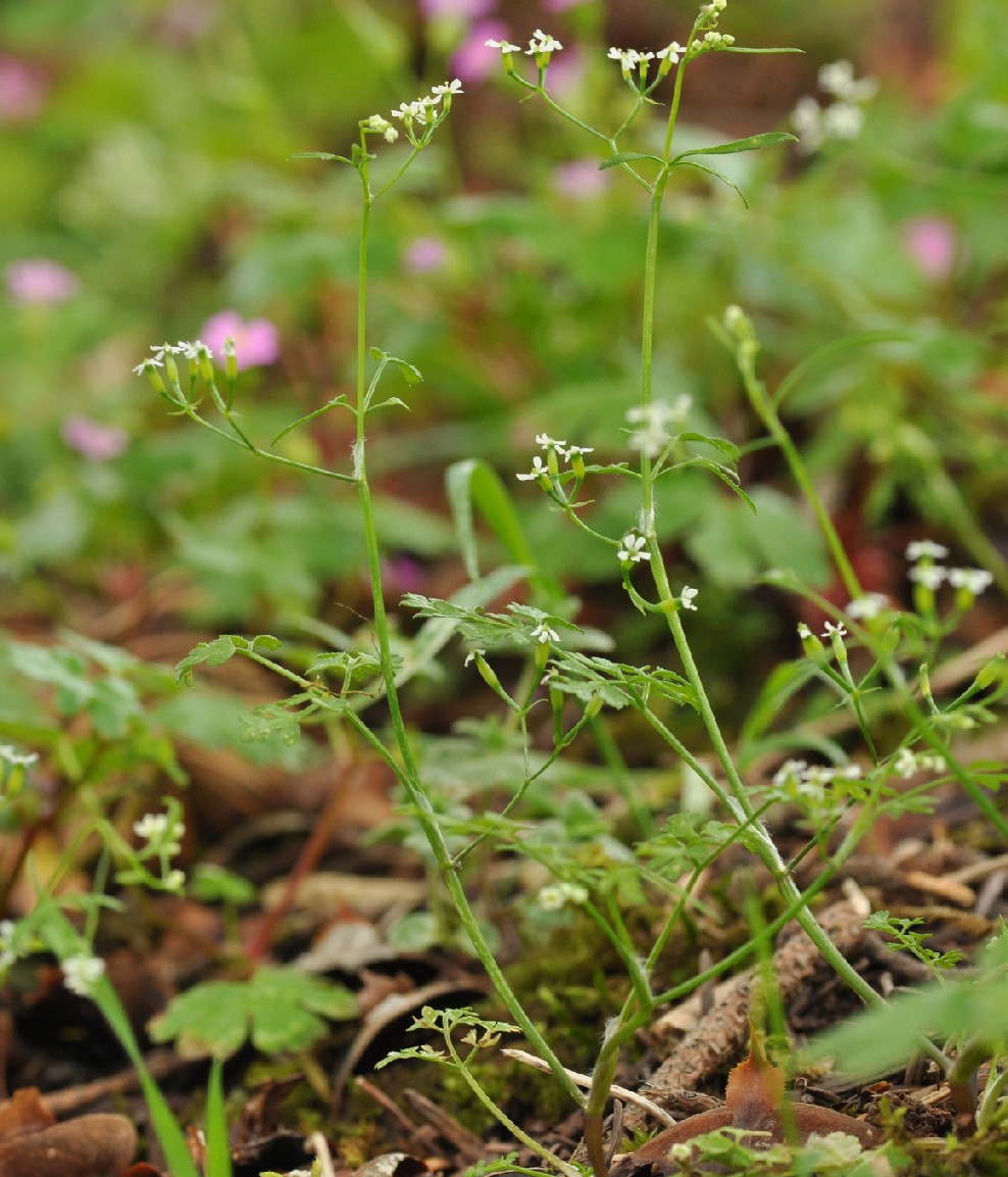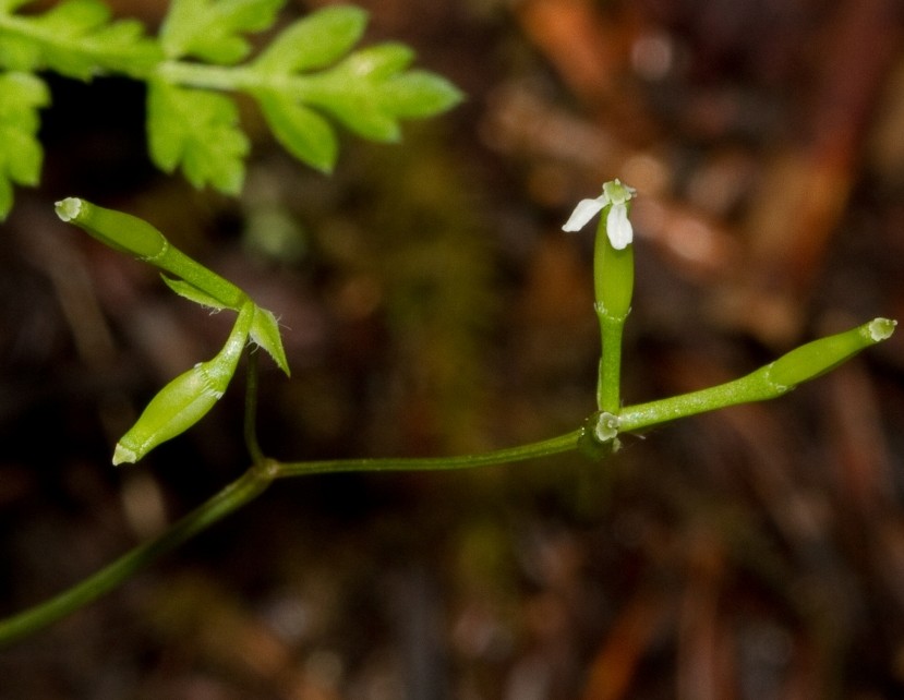 Kronblätter weiß, oft nach innen gerollt Frucht linealisch, geschnäbelt,