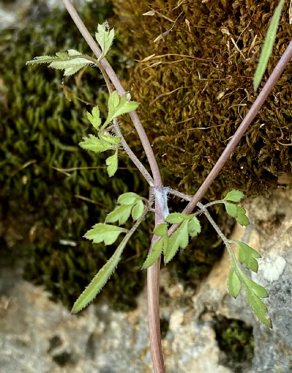langhaarig, Blättchen eiförmig, tief fiederteilig,