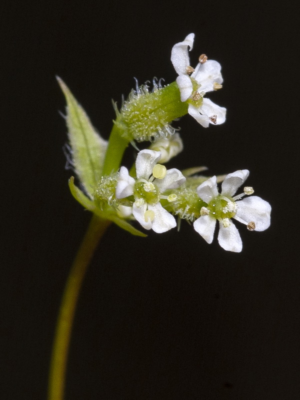 Kronblätter groß (2 mm) weiß, meist ausgebreitet