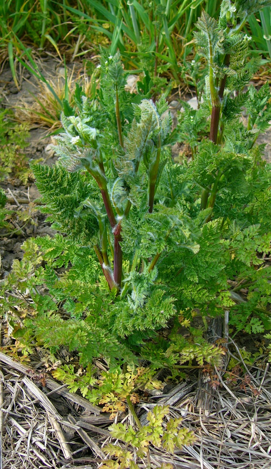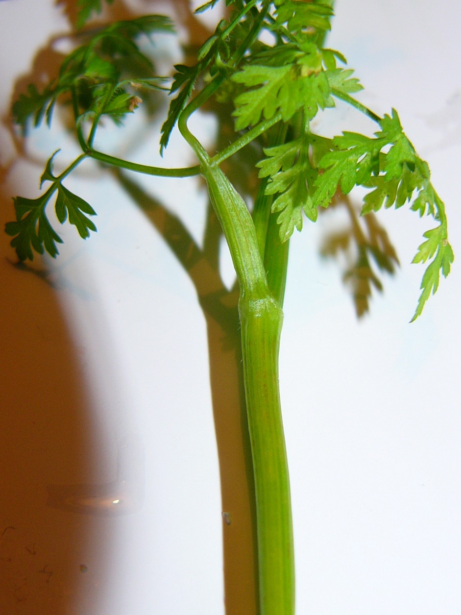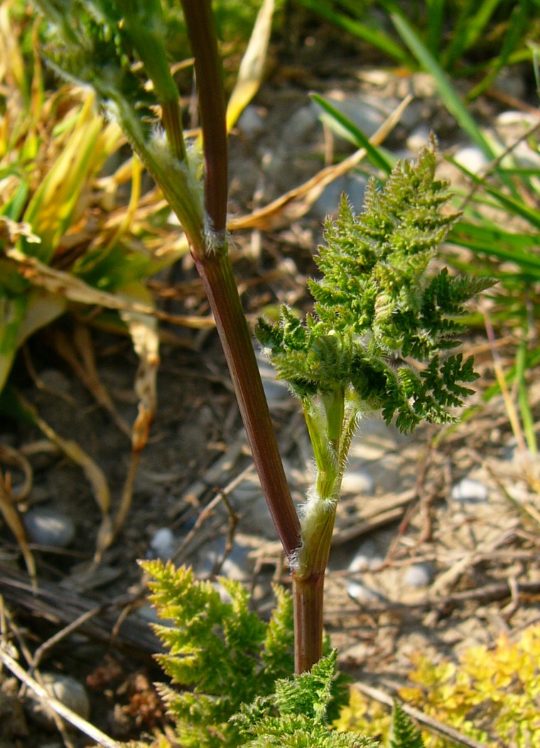 Stängel hohl, +/- kahl, schwach gefurcht, Blattscheiden zottig behaart Grundblätter 3 - 4- fach