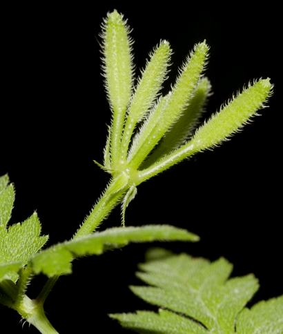 Dolden 2 - 4- strahlig Früchte zylindrisch, ungeschnäbelt, behaart > Myrrhoides nodosa