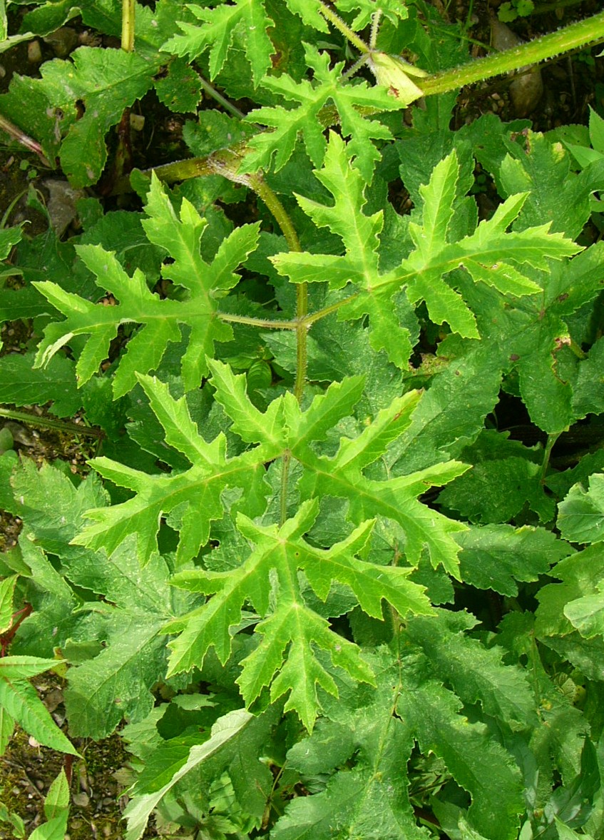 Blätter 3 - 5- zählig, bis 125 cm lang, 90 cm breit Fiederabschnitte tief gelappt > Heracleum sphondylium