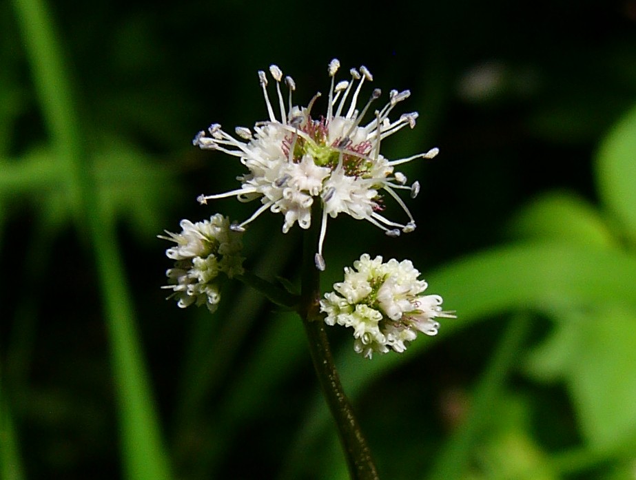 Weit verbreitete Art Früchte dicht mit gekrümmten Stacheln besetzt Blüten in Doppeldolden, Dolde mit 3 Strahlen, Döldchen halbkugelig, dicht, mit 1 - 3 zentralen, zwittrigen und 5 - 15 äußeren männlichen Blüten > Sanicula (Sanikel) |