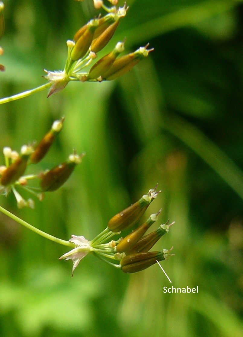 Früchte 5 - 10 mm lang, geschnäbelt, glatt, kahl > Anthriscus (Kerbel) |