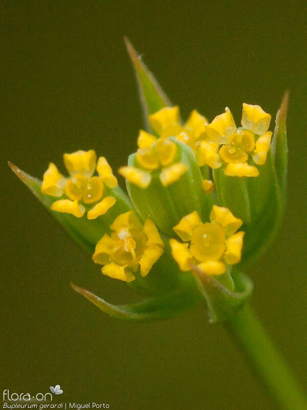 Die Dolde wird von 3 - 5 lanzettlichen Hüllblättern umgeben, welche länger als der kürzeste Doldenstrahl und kürzer als der längste Doldenstrahl sind