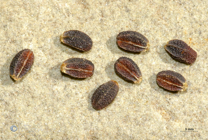 Früchte eiförmig, gerippt, 2,2 - 3 mm lang, 1,6 mm breit, länger als der Fruchtstiel