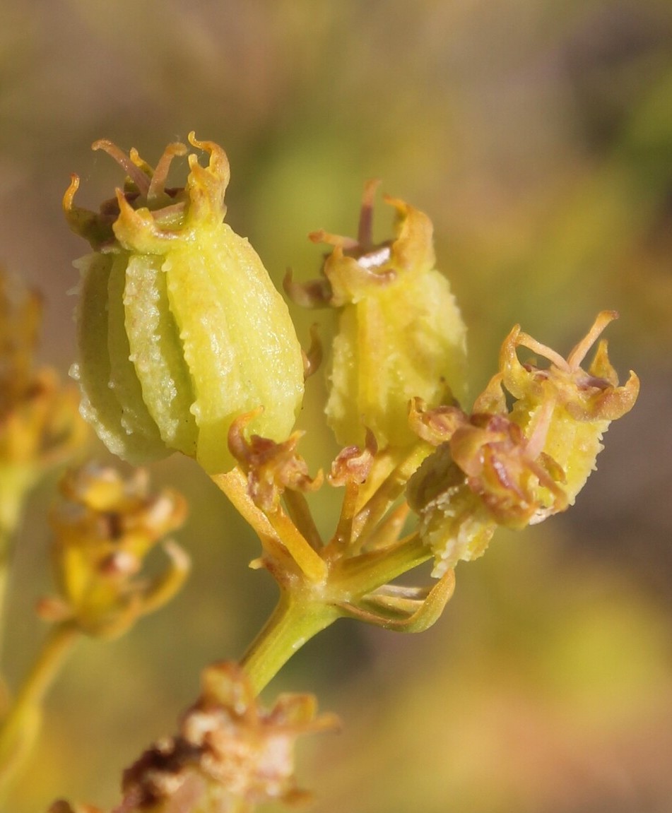 Früchte rundlich, 12 - 17 mm lang, mit scharfen Graten, die warzig- gezähnt sind Stängel gestreift Blätter 2 - 3- fach gefiedert, Inlandsformen mit fädlichen Endabschnitten