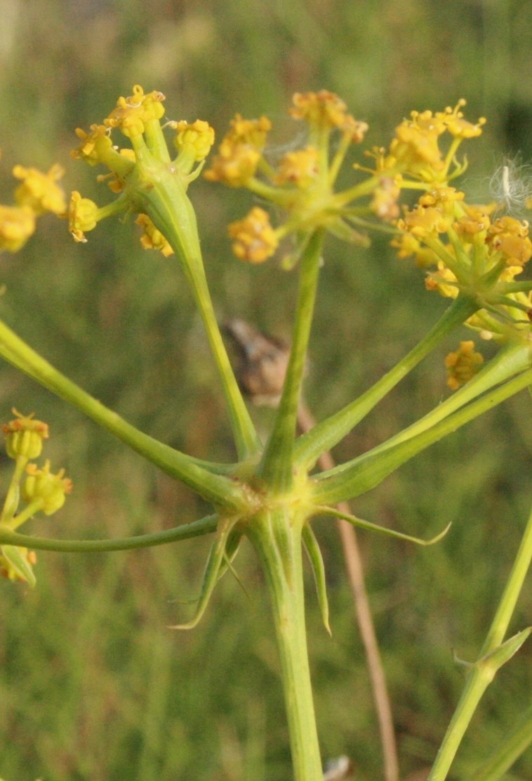 Blütenstand mit mehreren Dolden Hülle der äußeren Dolden meist einfach, Hüllchen einfach Hülle der zentralen Dolde 2- fach fiederteilig Kronblätter winzig, gelblich