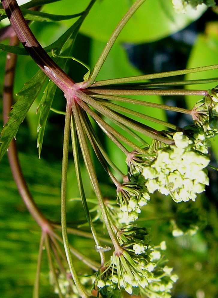Stängel kräftig, verzweigt, mit mehreren Dolden