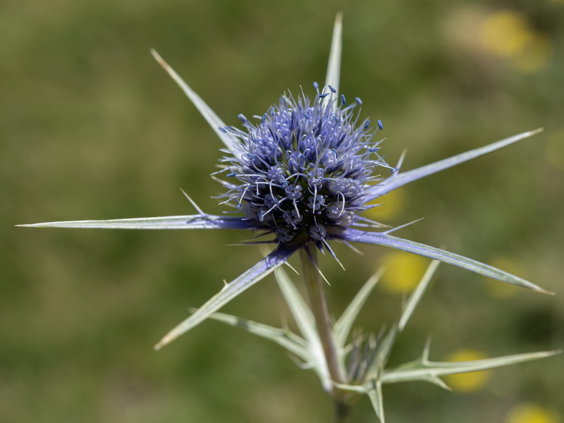 V - IX, Böschungen, trockene Weiden, Gebüsch (10 - 1600 m) Synonyme: English name: Weltweite Verbreitung: Etymologie: Der Name Eryngium crinitum Presel wird in der Flora d'Italia 2 gebraucht. In anderen Florenwerken ist dieser Name ein Synonym von Eryngium dilatatum Lam., welches nur auf der Iberischen Halbinsel vorkommt.