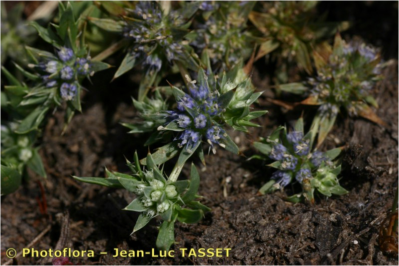 Eryngium- Pflanze niederliegend Blätter netznervig, Hüllblätter lanzettlich