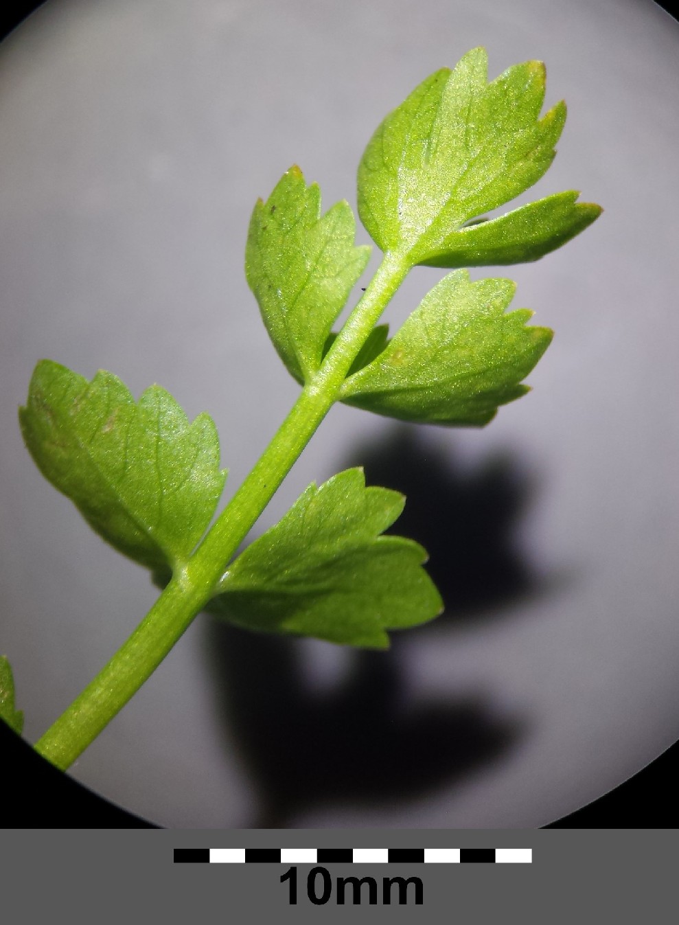 Blättchen rundlich, gezähnt, 5 - 14 mm lang, 5 - 11 breit, beiderseits kahl